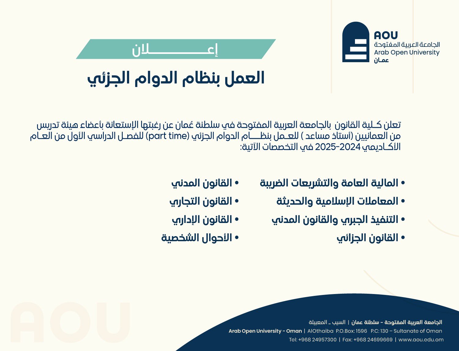 الجامعة العربية المفتوحة - وظائف شاغرة بنظام الدوام الجزئي