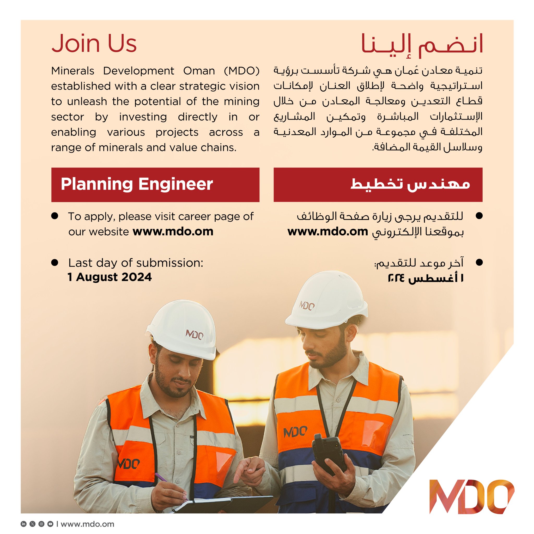 شركة تنمية معادن عمان - وظيفة شاغرة ( مهندس تخطيط )