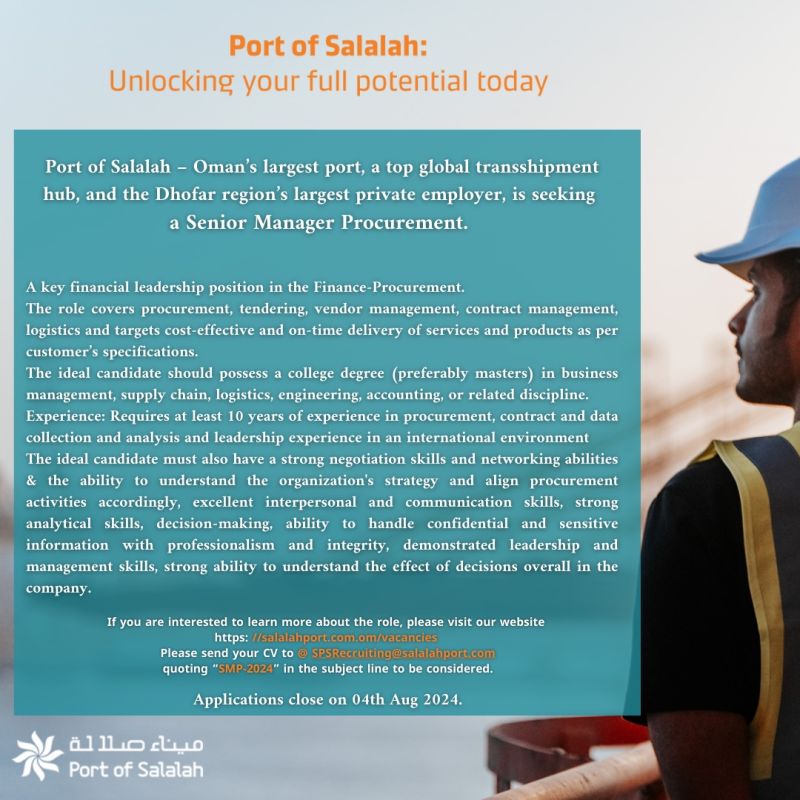 ميناء صلالة - وظيفة شاغرة ( Senior Manager Procurement )