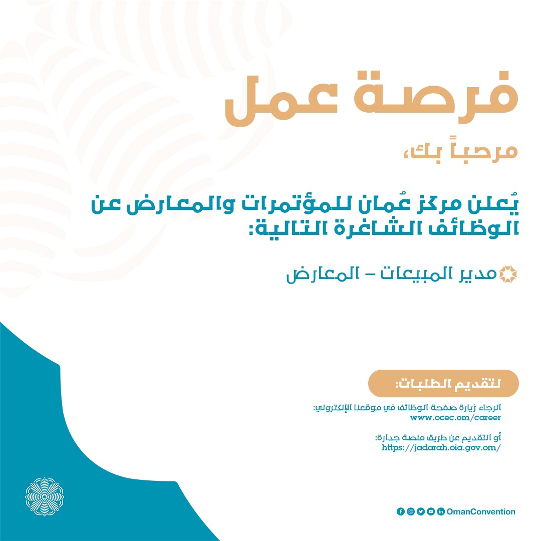 مركز عُمان للمؤتمرات والمعارض - وظيفة شاغرة ( مدير المبيعات - المعارض )