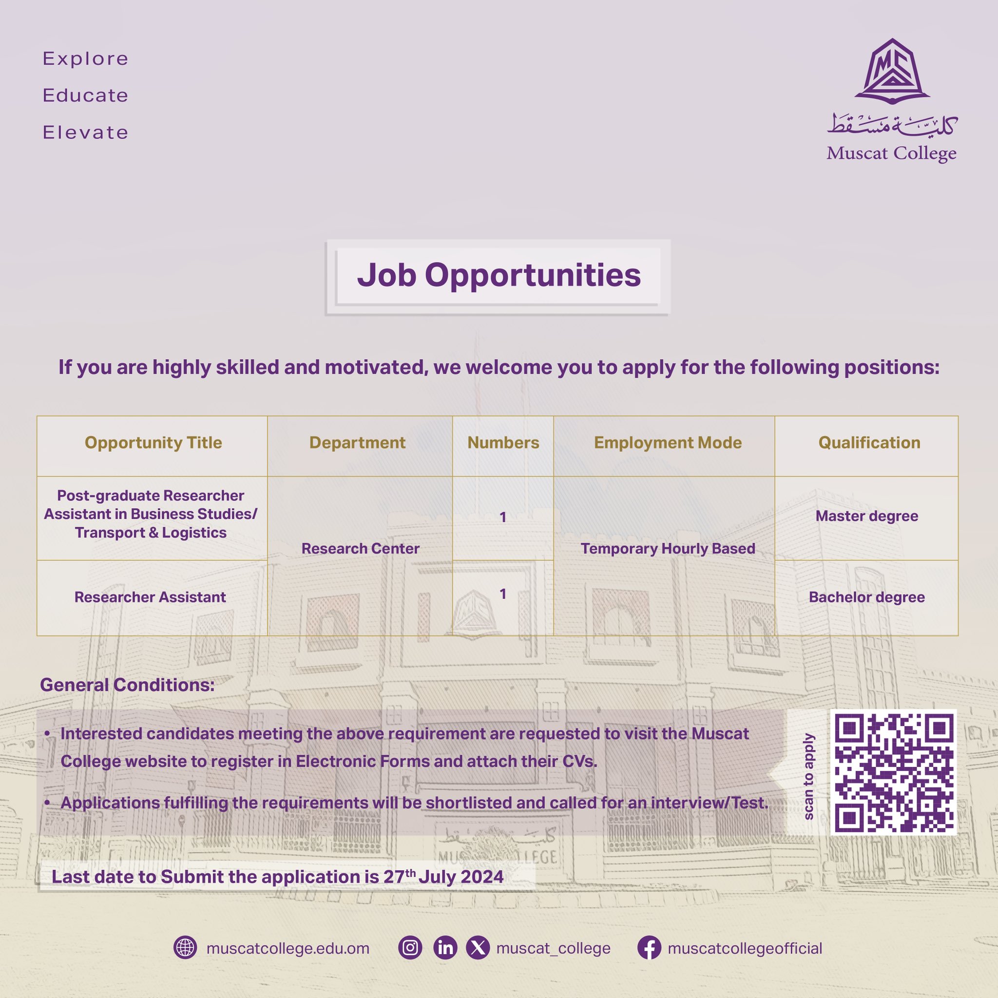 كلية مسقط - توفير شواغر وظيفية