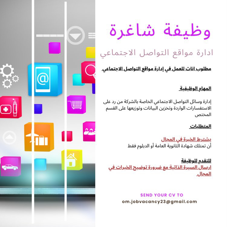احدى الشركات الرائدة - وظيفة شاغرة ( إدارة مواقع التواصل الإجتماعي )