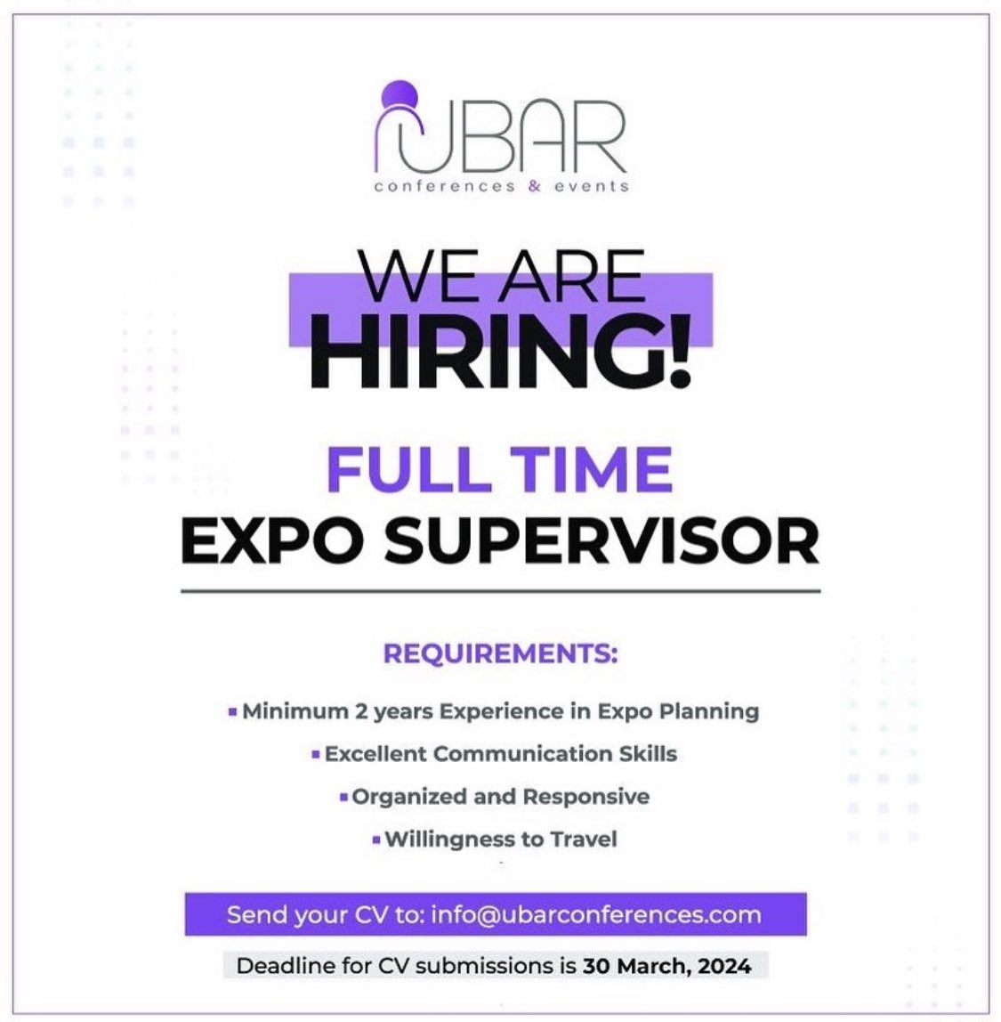 شركة أوبر للمعارض - فرصة عمل ( مشرف المعرض )