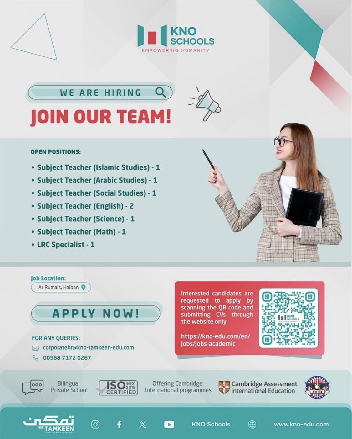 مدرسة كينو الدولية الخاصة في بركاء - وظائف شاغرة