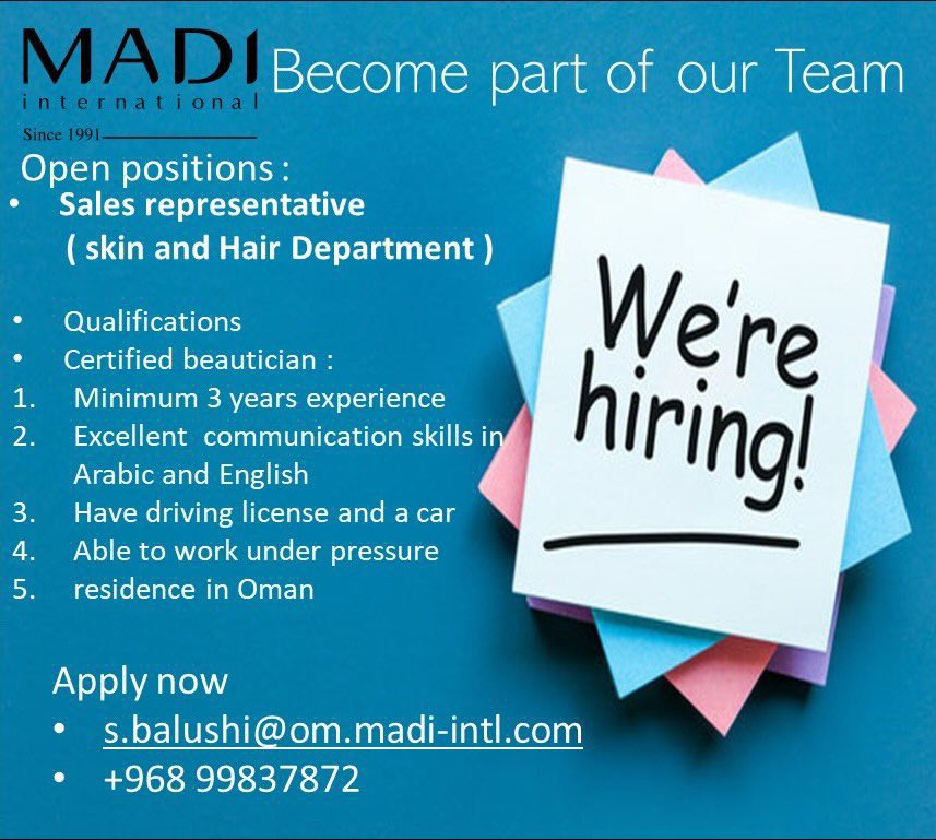 شركة مادي إنترناشيونال - فرصة وظيفية ( Sales representative )