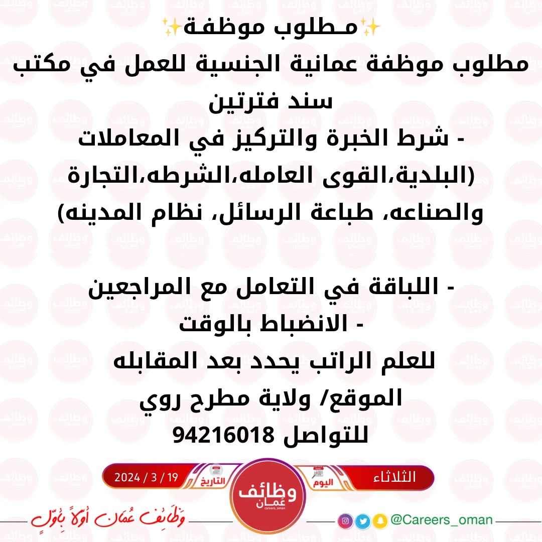 مكتب سند في روي - وظيفة شاغرة ( موظفة )