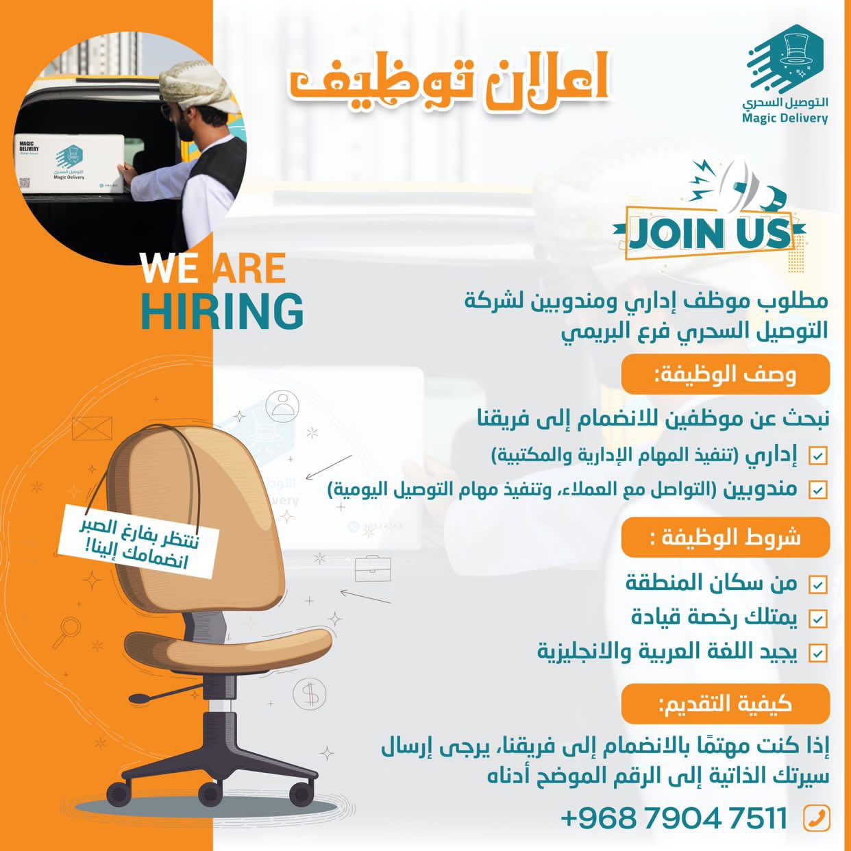 شركة التوصيل السحري - وظيفة شاغرة ( موظف إداري ومندوبين لشركة )