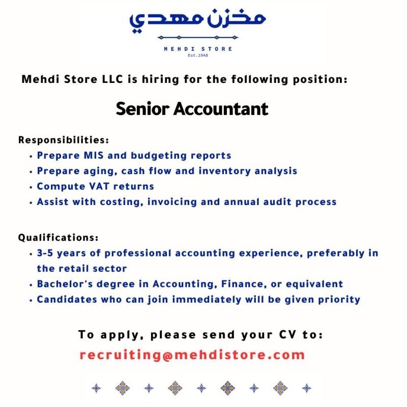 مخزن مهدي - وظيفة شاغرة ( Senior Accountant )