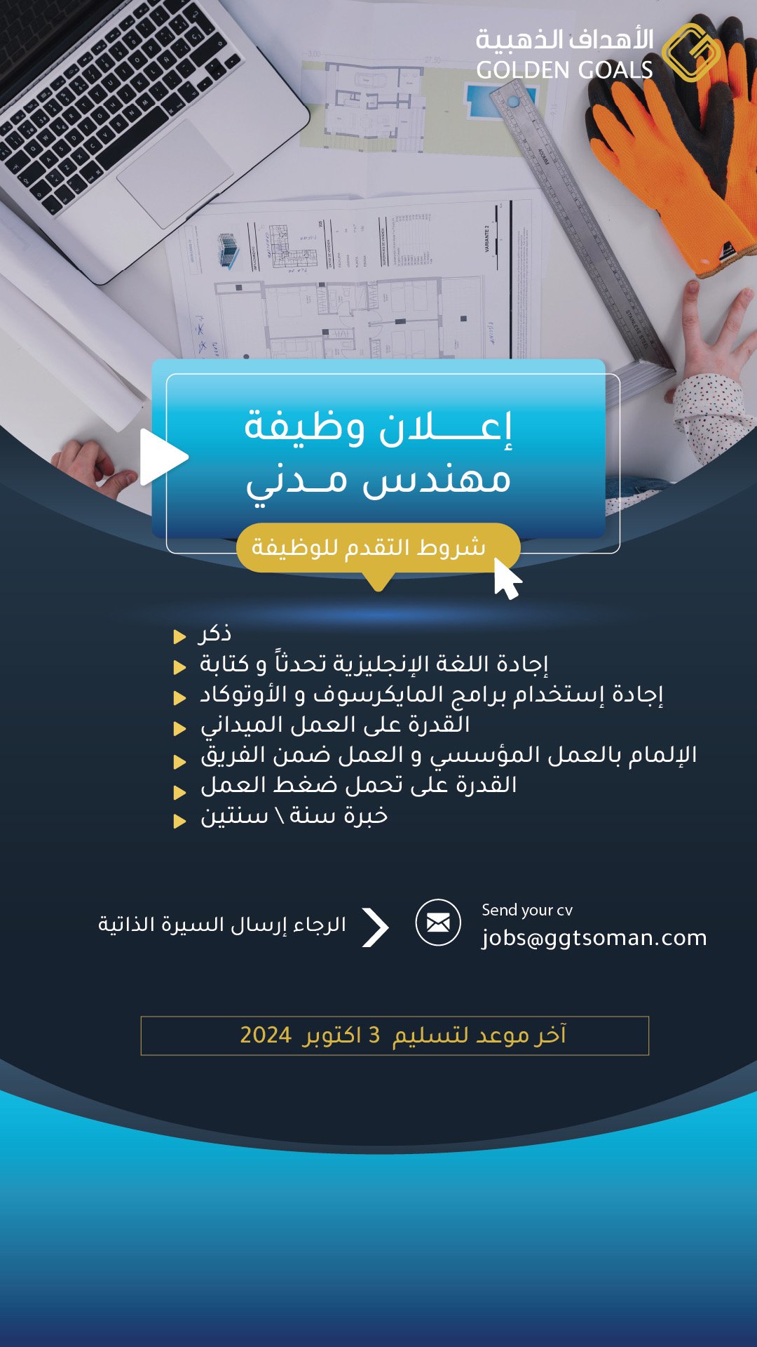 الأهداف الذهبية - وظيفة شاغرة ( مهندس مدني )