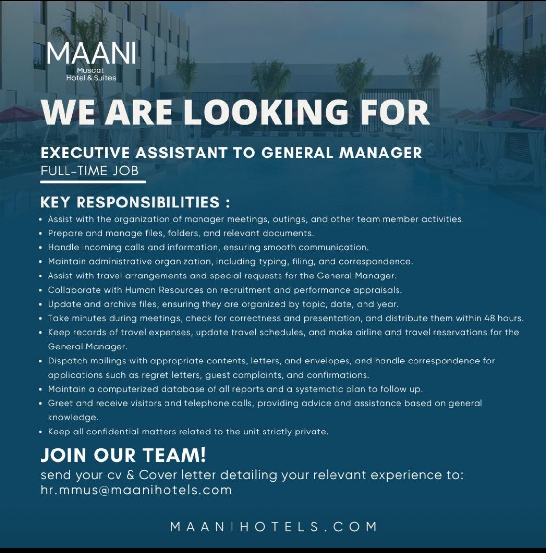 فندق وأجنحة معاني مسقط - وظيفة شاغرة ( EXECUTIVE ASSISTANT TO GENERAL MANAGER )
