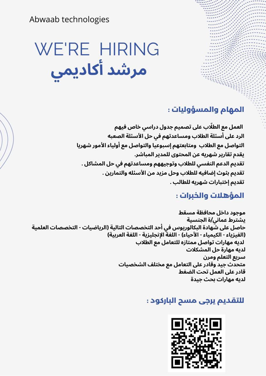 شركة أبواب للتكنولوجيا - وظيفة شاغرة ( مرشد أكاديمي )