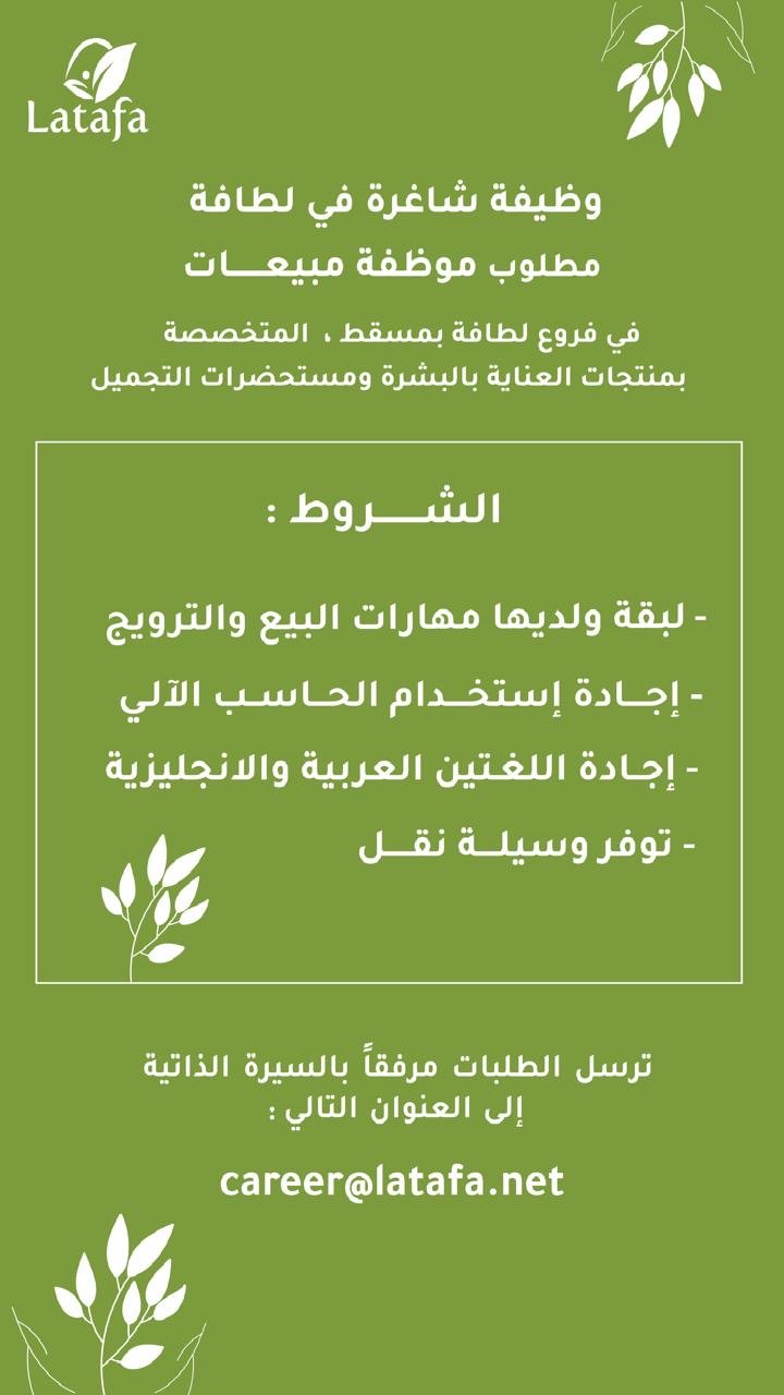 لطافة - وظيفة شاغرة ( موظفة مبيعات )