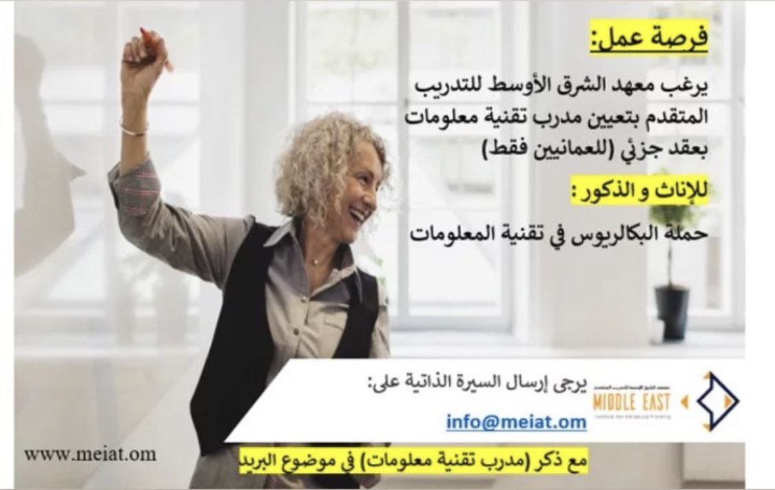 معهد الشرق الأوسط للتدريب - فرصة وظيفية بعقد جزئي ( مدرب تقنية معلومات )