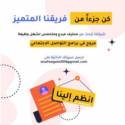 معهد بوابة الصفوة - وظيفة شاغرة ( مروج في برامج التواصل الاجتماعي )