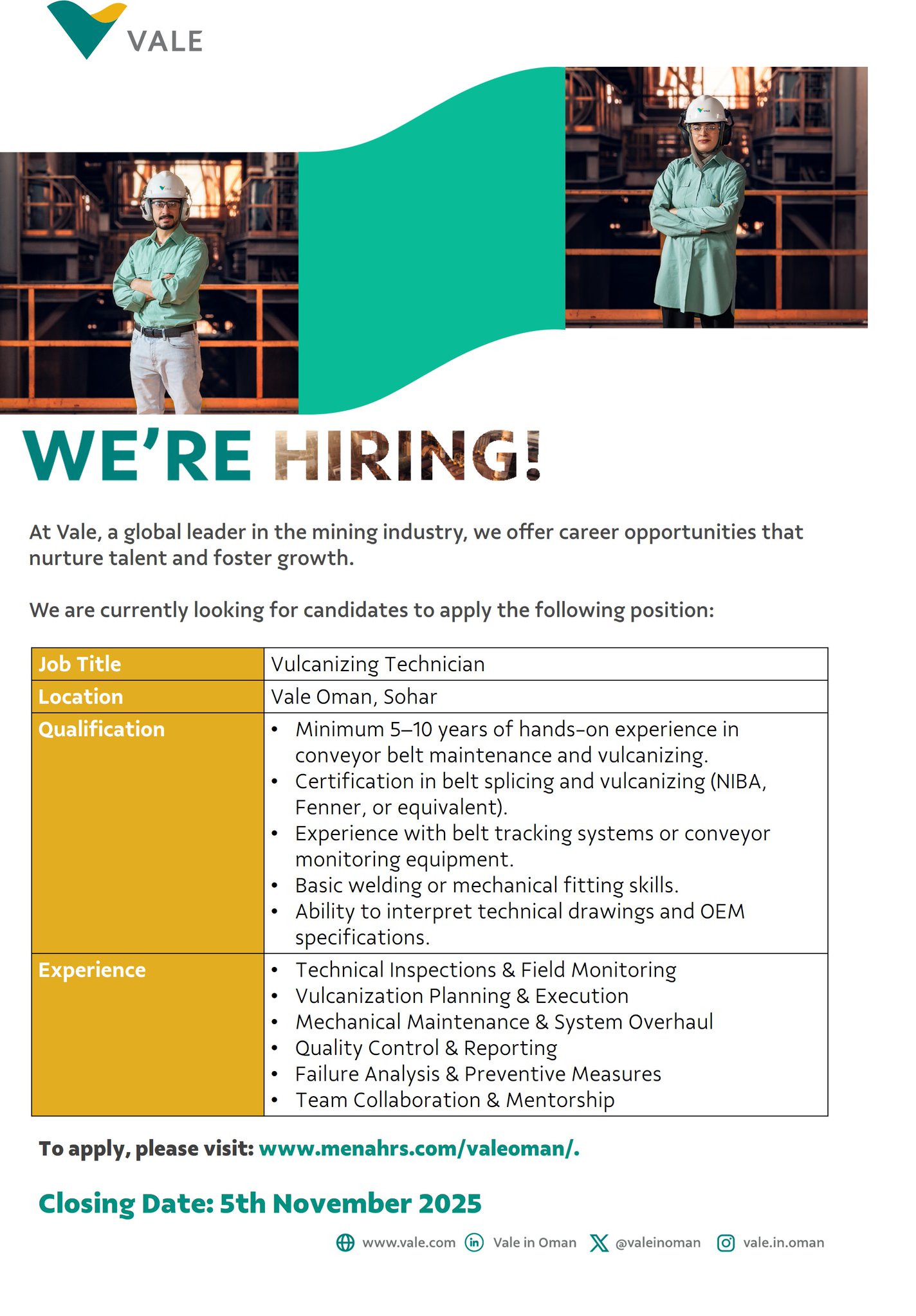 شركة فالي في صحار - وظيفة شاغرة ( Vulcanizing Technician )