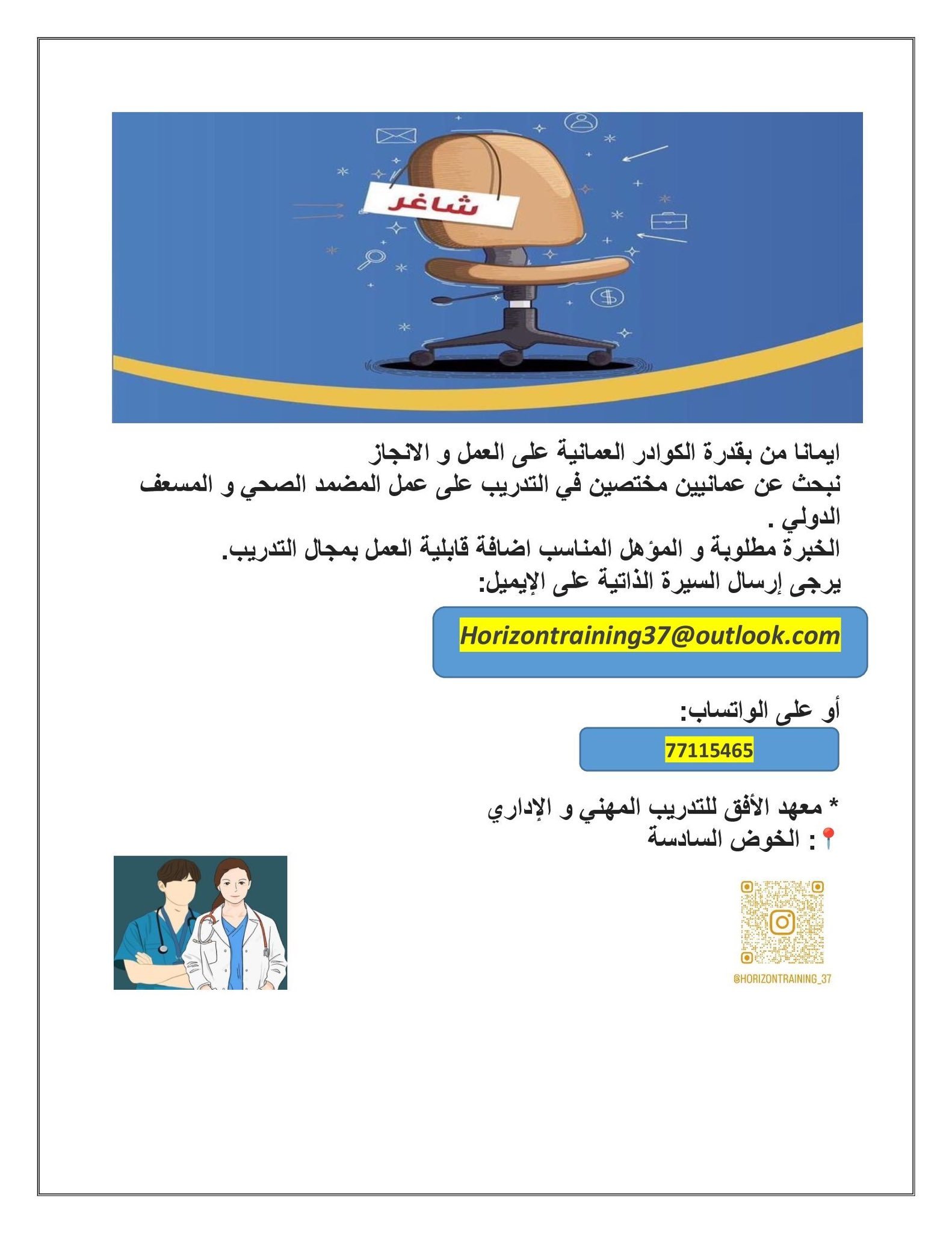 معهد الأفق للتدريب المهني والإداري في الخوض - فرصة شاغرة ( مختصين في التدريب على عمل المضمد الصحي و المسعف الدولي )