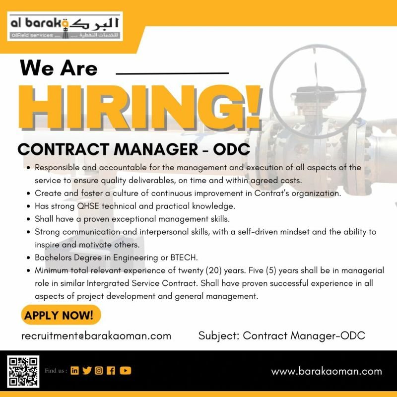شركة البركة للخدمات النفطية - وظيفة شاغرة ( CONTRACT MANAGER - ODC )