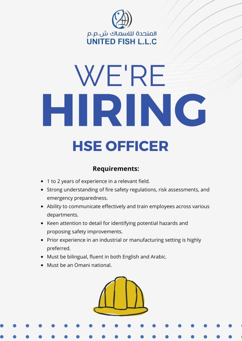 المتحدة للأسماك - وظيفة شاغرة ( ضابط أمن وسلامة )