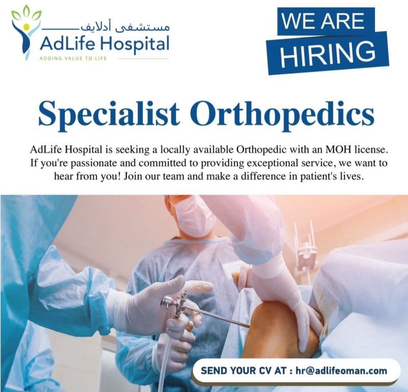 مستشفى أدلايف - وظيفة شاغرة ( Specialist Orthopedics )