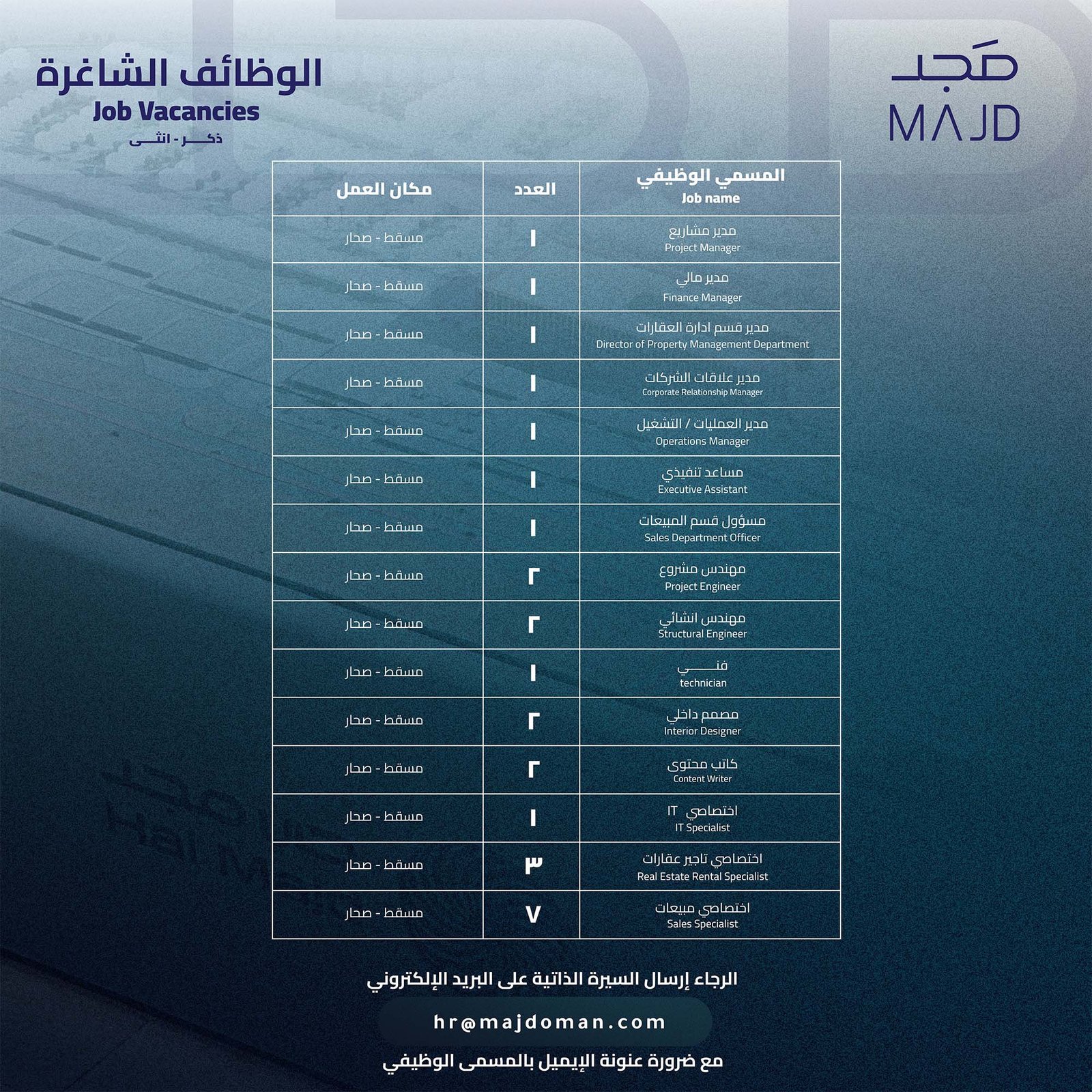 شركة مجد العقارية - 27 فرصة وظيفية في مختلف التخصصات