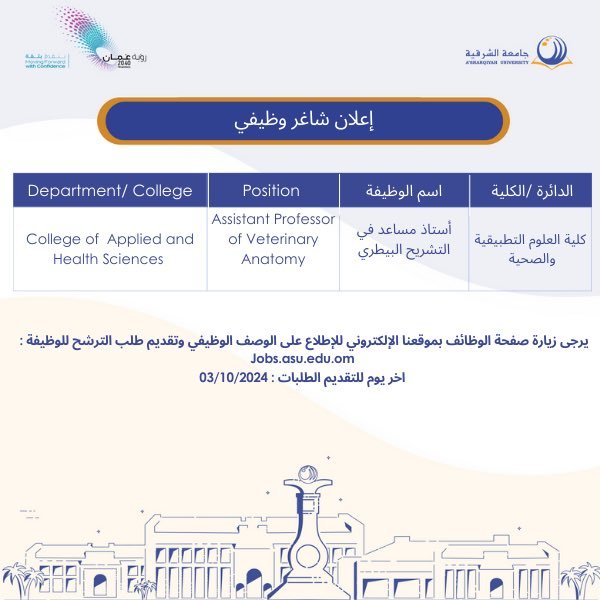 جامعة الشرقية - وظيفة شاغرة ( استاذ مساعد في التشريح البيطري )