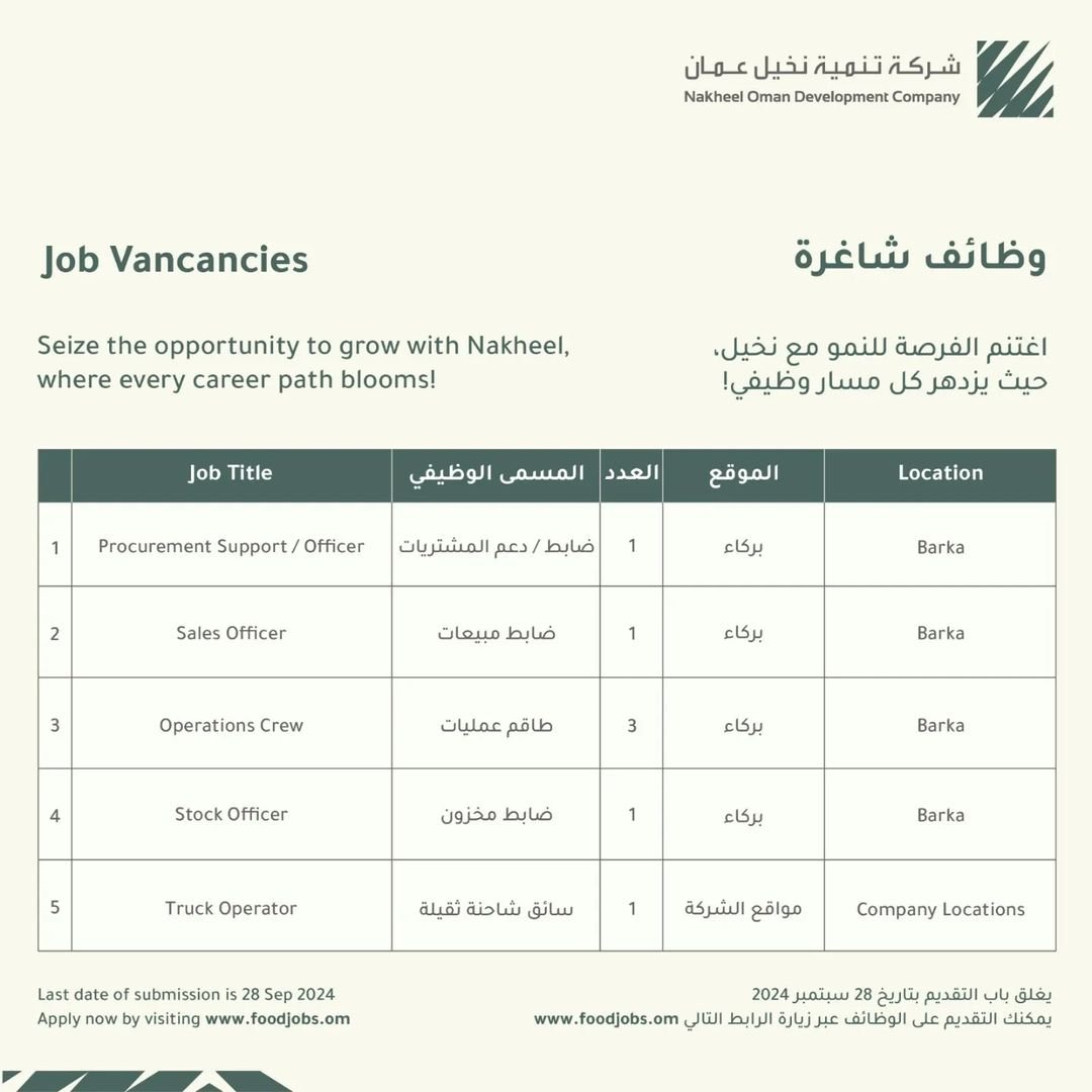 شركة تنمية نخيل عمان - وظائف شاغرة