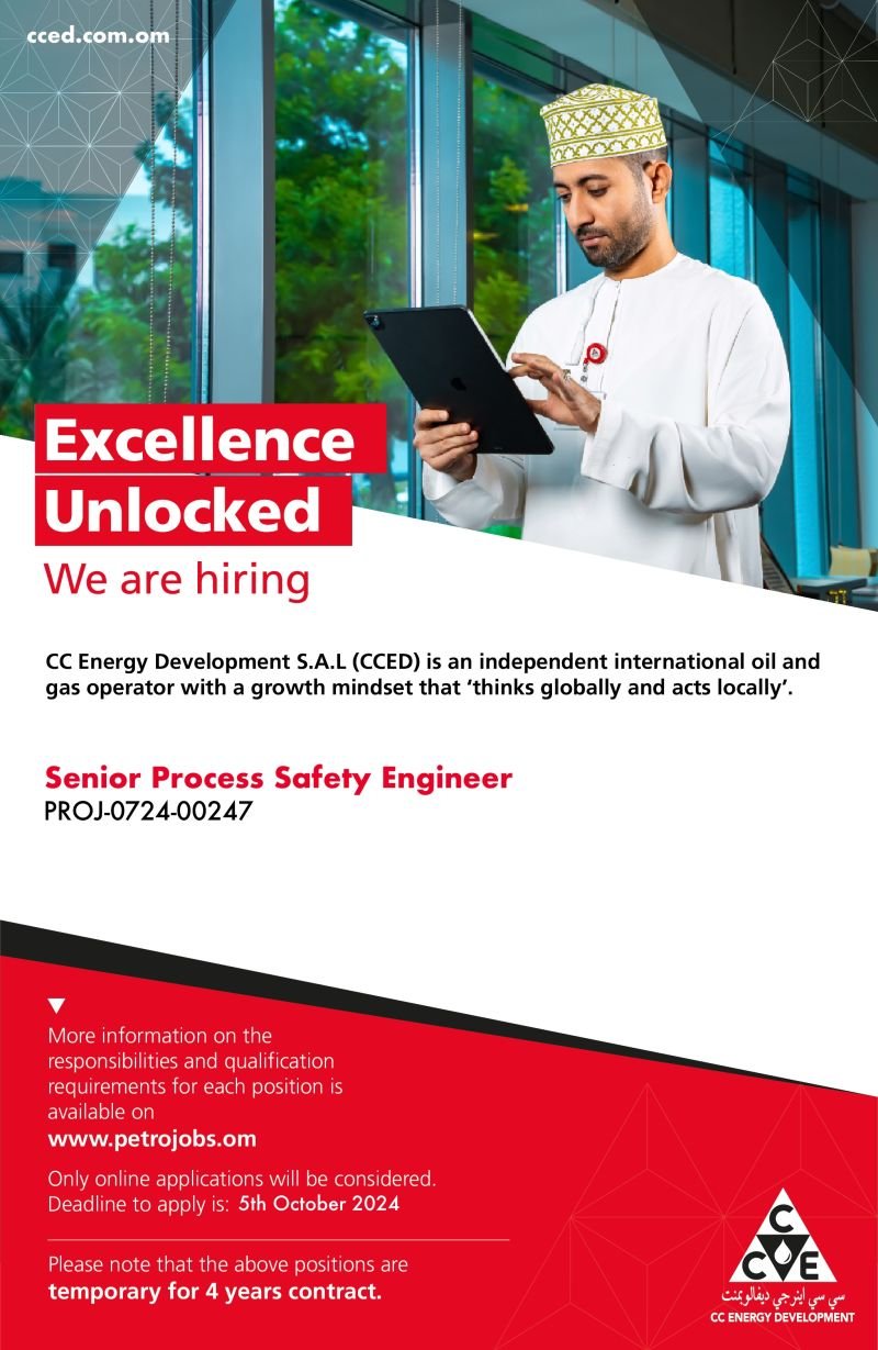 شركة سي سي اينرجي ديفالوبمنت - وظيفة شاغرة ( Senior Process Safety Engineer )