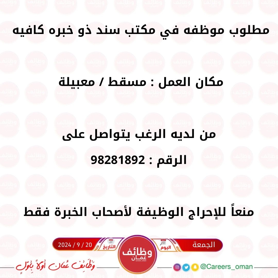 مكتب سند للخدمات في المعبيلة - وظيفة شاغرة ( موظفة )