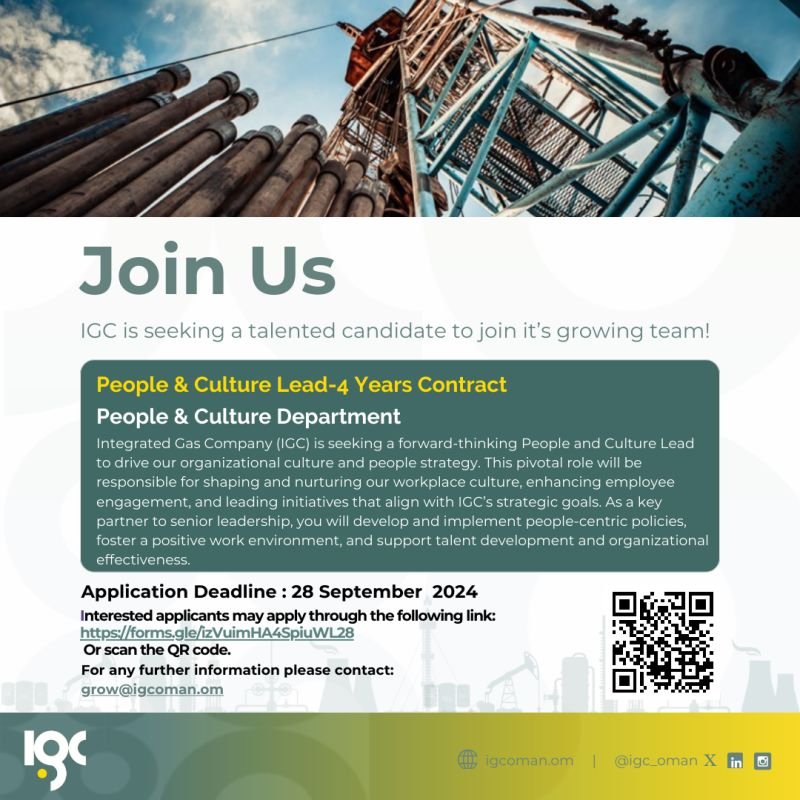 شركة الغاز المتكاملة - وظيفة شاغرة ( People & Culture Lead )