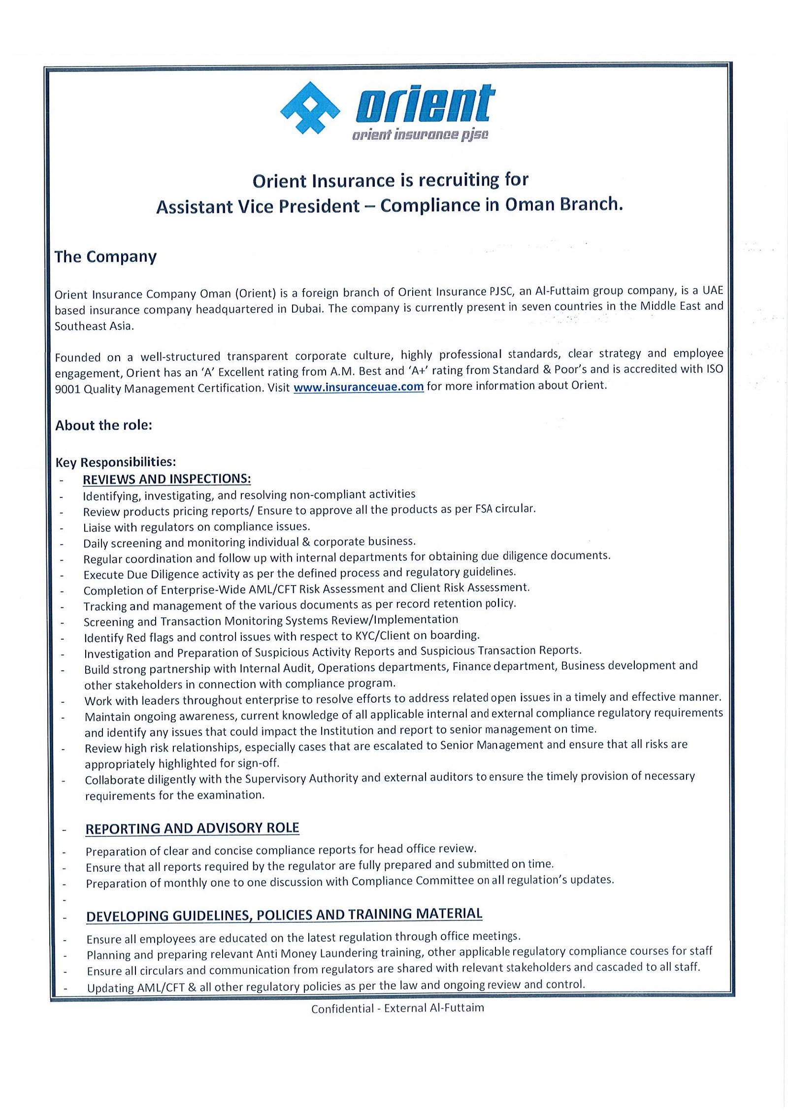 شركة أورينت للتأمين - وظيفة شاغرة ( Assistant Vice President )