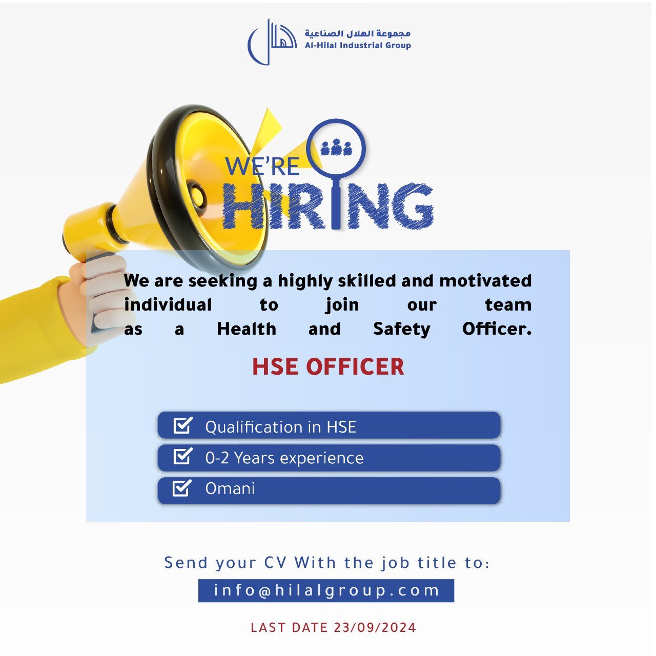 مجموعة الهلال الصناعية - وظيفة شاغرة ( HSE OFFICER )