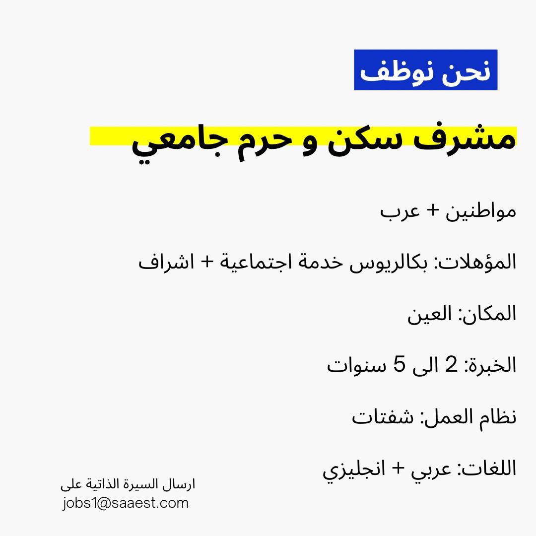 شركة صاع للخدمات الفنية والتخصصية - فرصة وظيفية ( مشرف سكن وحرم جامعي )