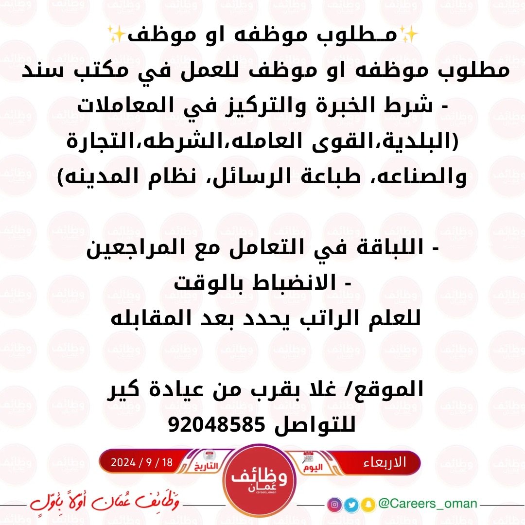 مكتب سند للخدمات في غلا - وظيفة شاغرة ( موظف أو موظفة )