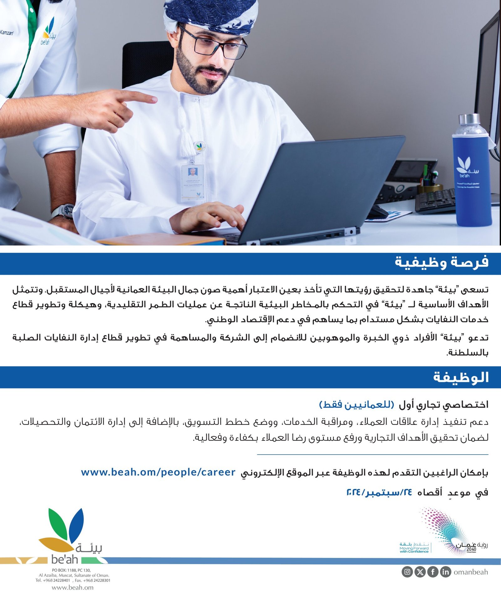 الشركة العمانية القابضة لخدمات البيئة - وظيفة شاغرة ( اختصاصي تجاري أول )