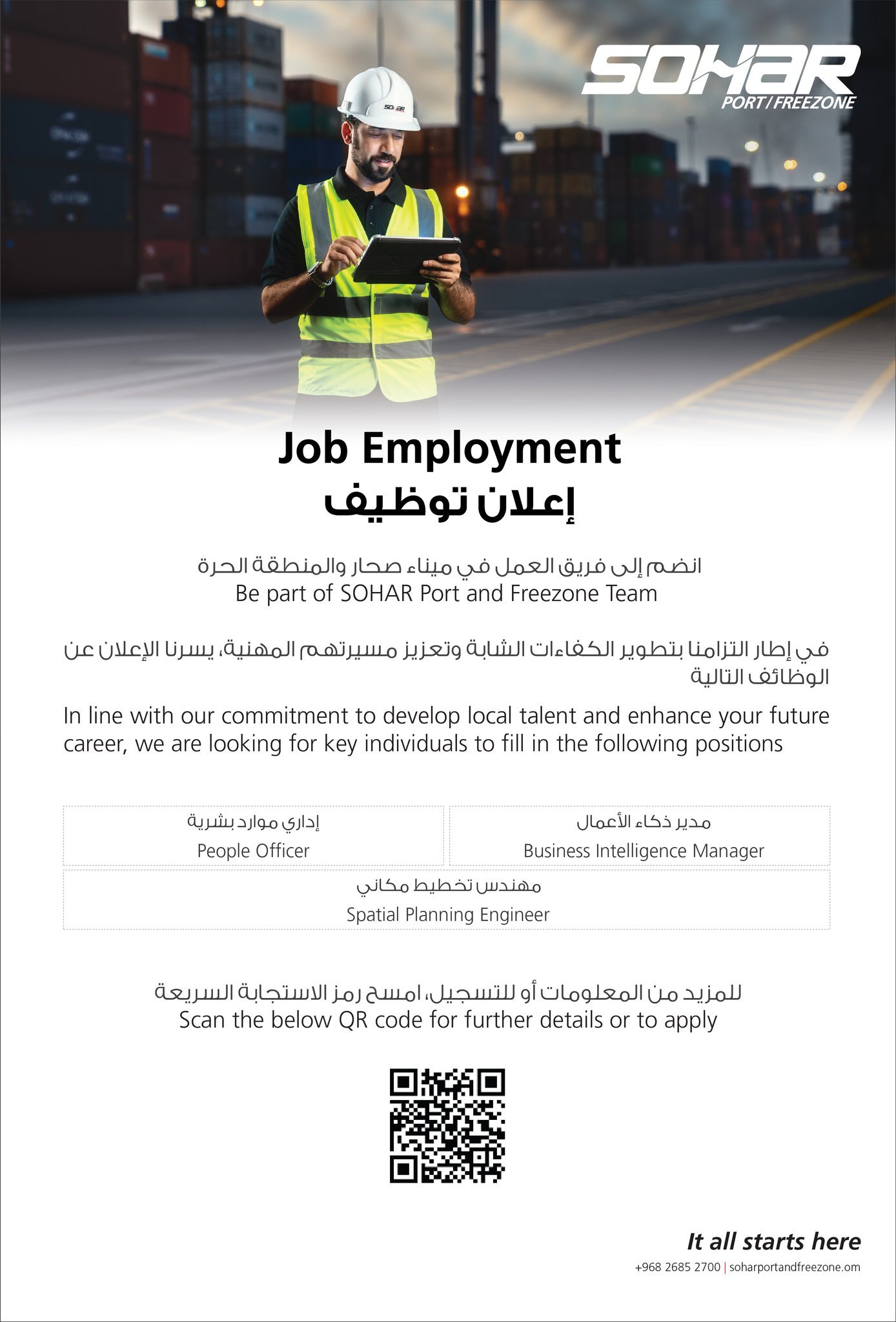 ميناء صحار والمنطقة الحرة - فرص وظيفية ( مدير ذكاء الأعمال + إداري موارد بشرية )