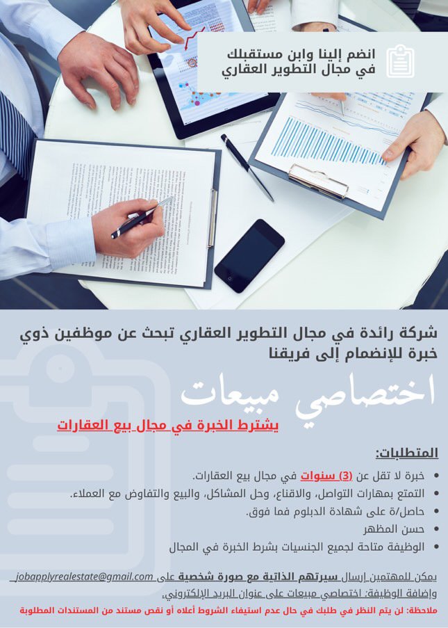 شركة رائدة في مجال التطوير العقاري - وظيفة شاغرة ( اختصاصي مبيعات )