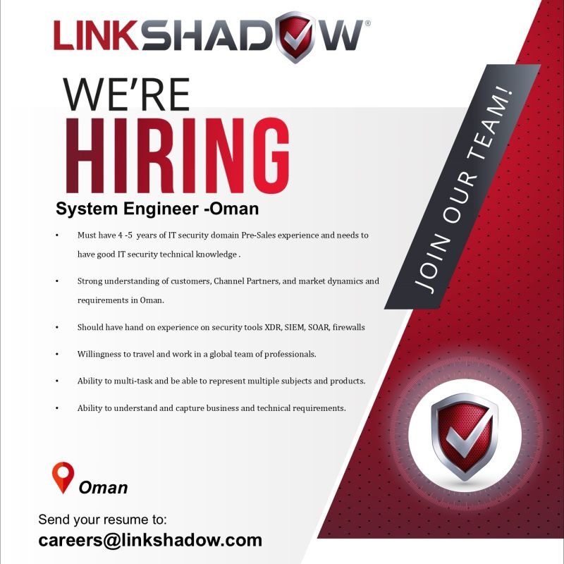 شركة LinkShadow - وظيفة شاغرة ( System Engineer )