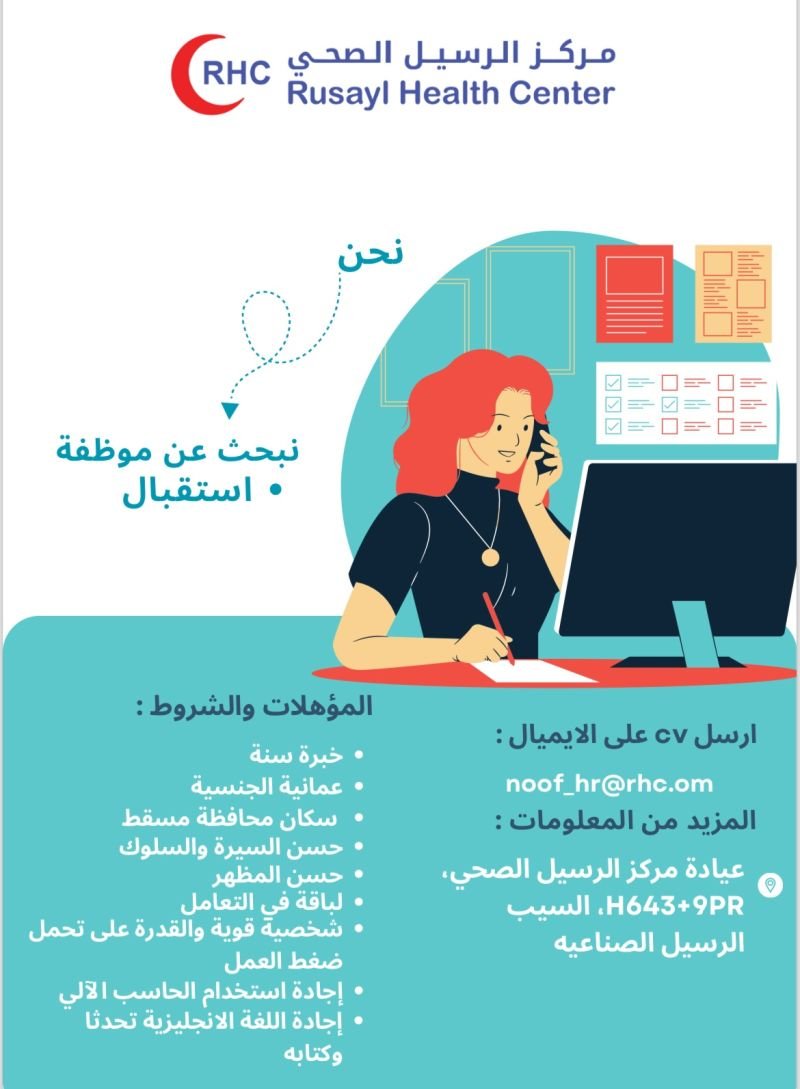 مركز الرسيل الصحي - وظيفة شاغرة ( موظفة استقبال )