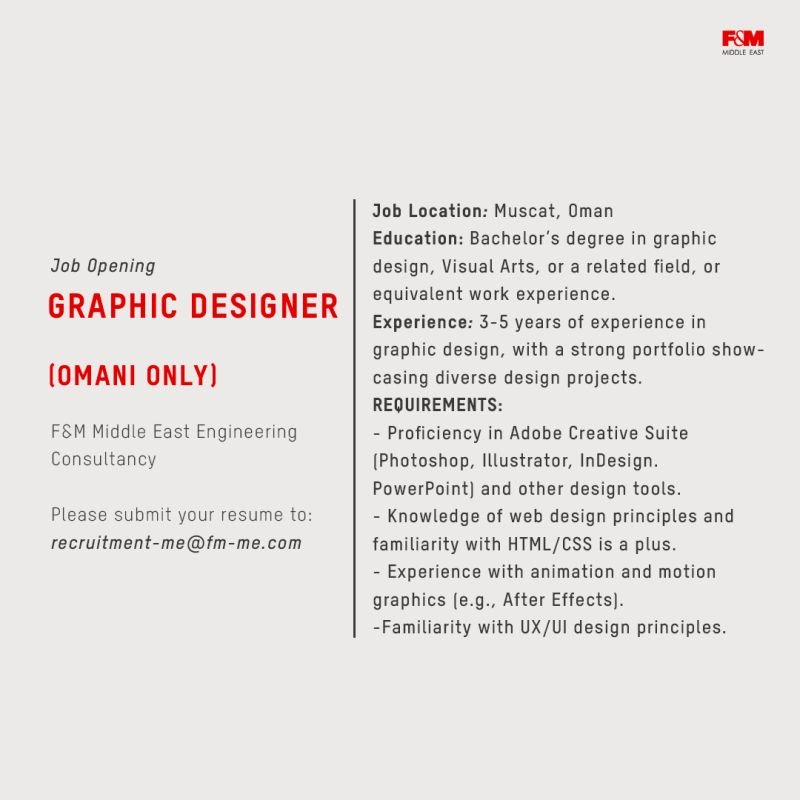 شركة اف اند ام الشرق الأوسط للإستشارات الهندسية - وظيفة شاغرة ( مصمم جرافيك )