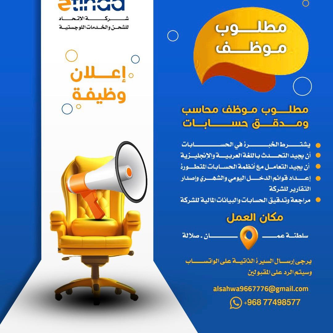 شركة الاتحاد للشحن والخدمات اللوجستية - وظيفة شاغرة ( محاسب )