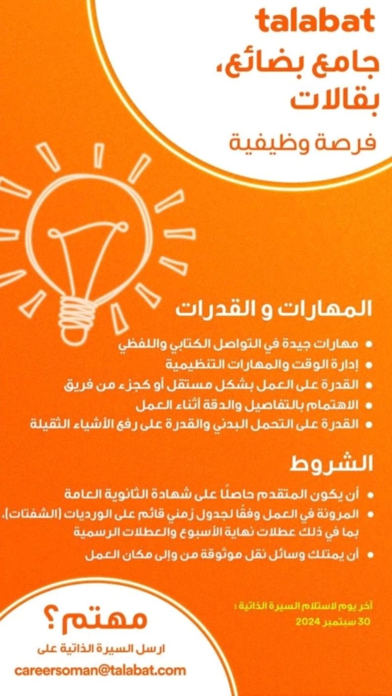 شركة طلبات - وظيفة شاغرة ( جامع بضائع بقالات )