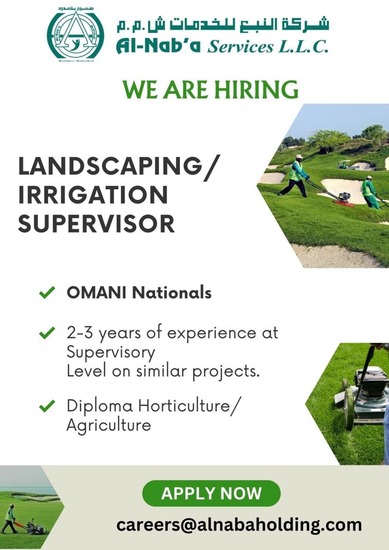 شركة النبع للخدمات - وظيفة شاغرة ( LANDSCAPING IRRIGATION SUPERVISOR )