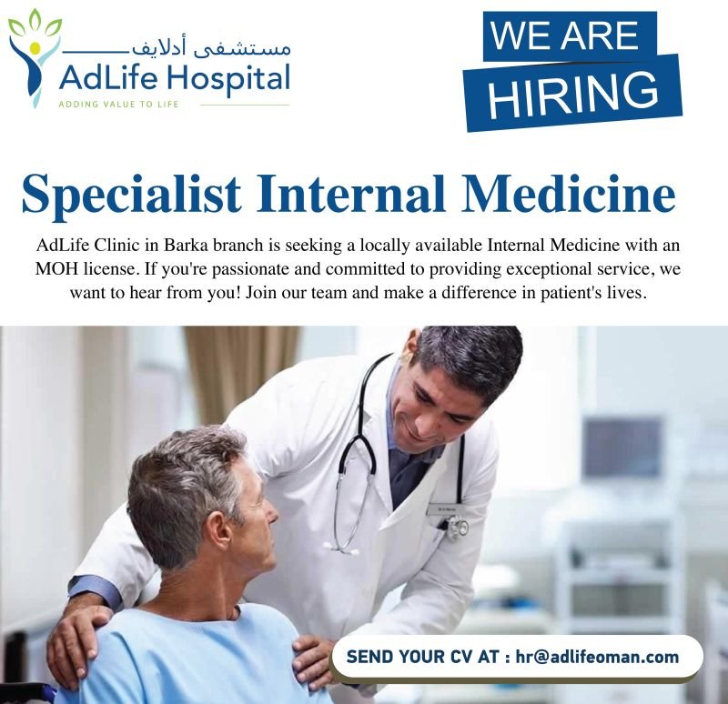 مستشفى أدلايف - وظيفة شاغرة ( Specialist Internal Medicine )