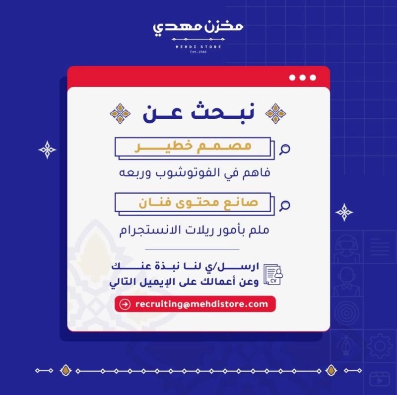 مخزن مهدي - وظائف شاغرة ( مصمم + صانع محتوى )