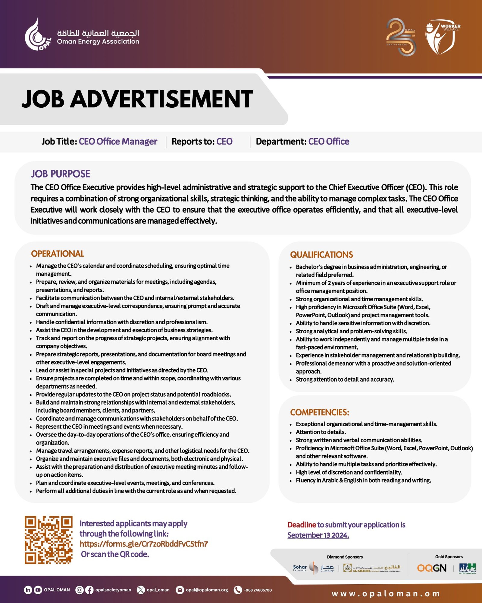 الجمعية العمانية للطاقة - وظيفة شاغرة ( CEO Office Manager )