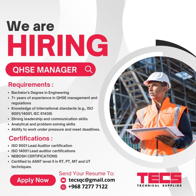 الشركة العالمية للتجهيزات الفنية - وظيفة شاغرة ( مدير الجودة والصحة والسلامة والبيئة )