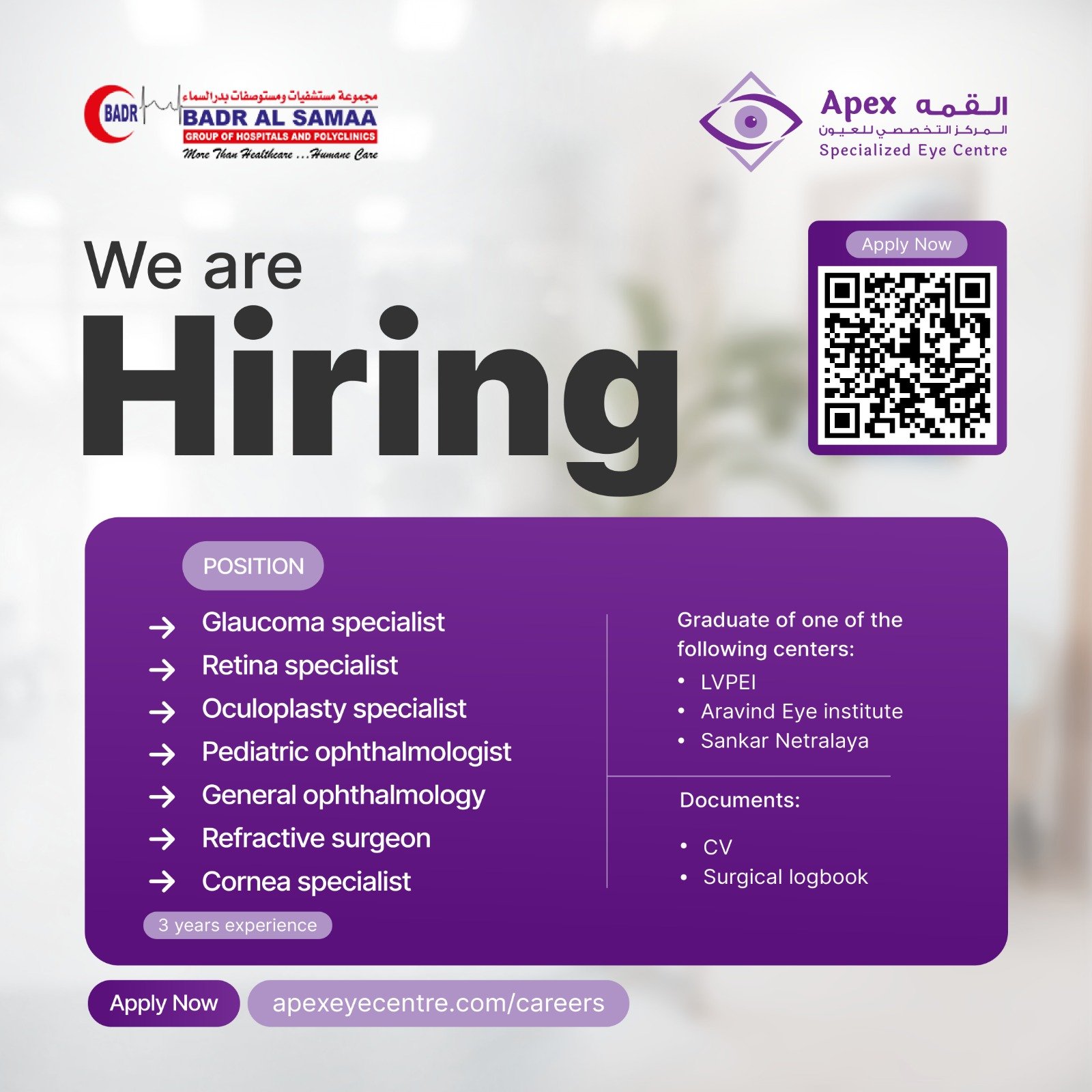 مركز القمه التخصصي المتكامل للعيون - فرص وظيفية جديدة
