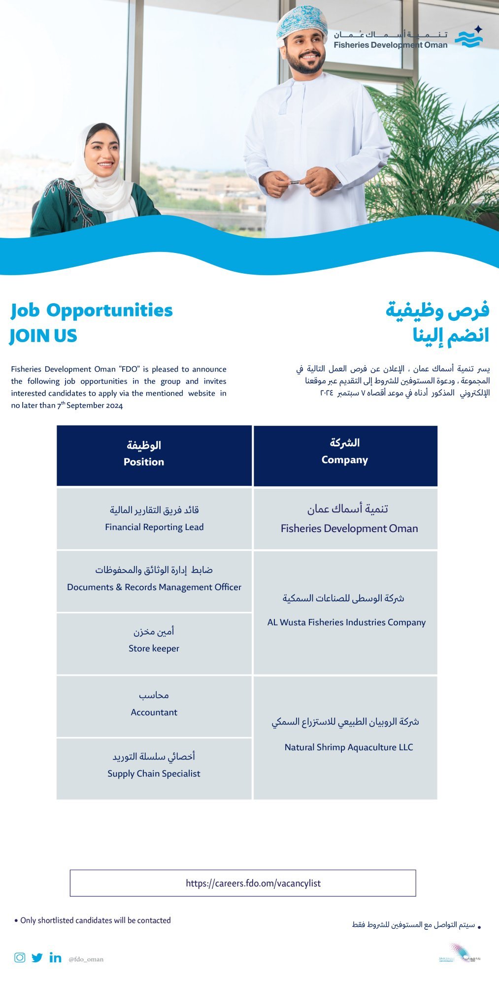 شركة تنمية أسماك عمان - وظائف شاغرة