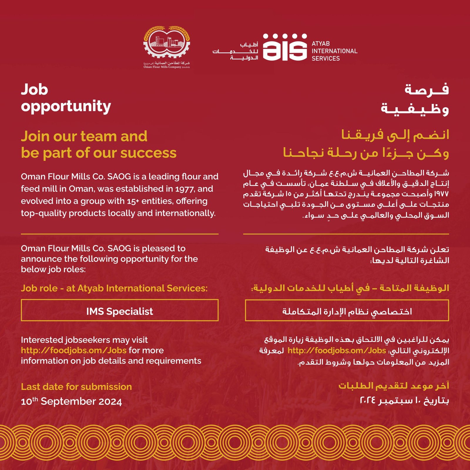 شركة المطاحن العمانية - وظيفة شاغرة ( اختصاصي نظام الإدارة المتكاملة )