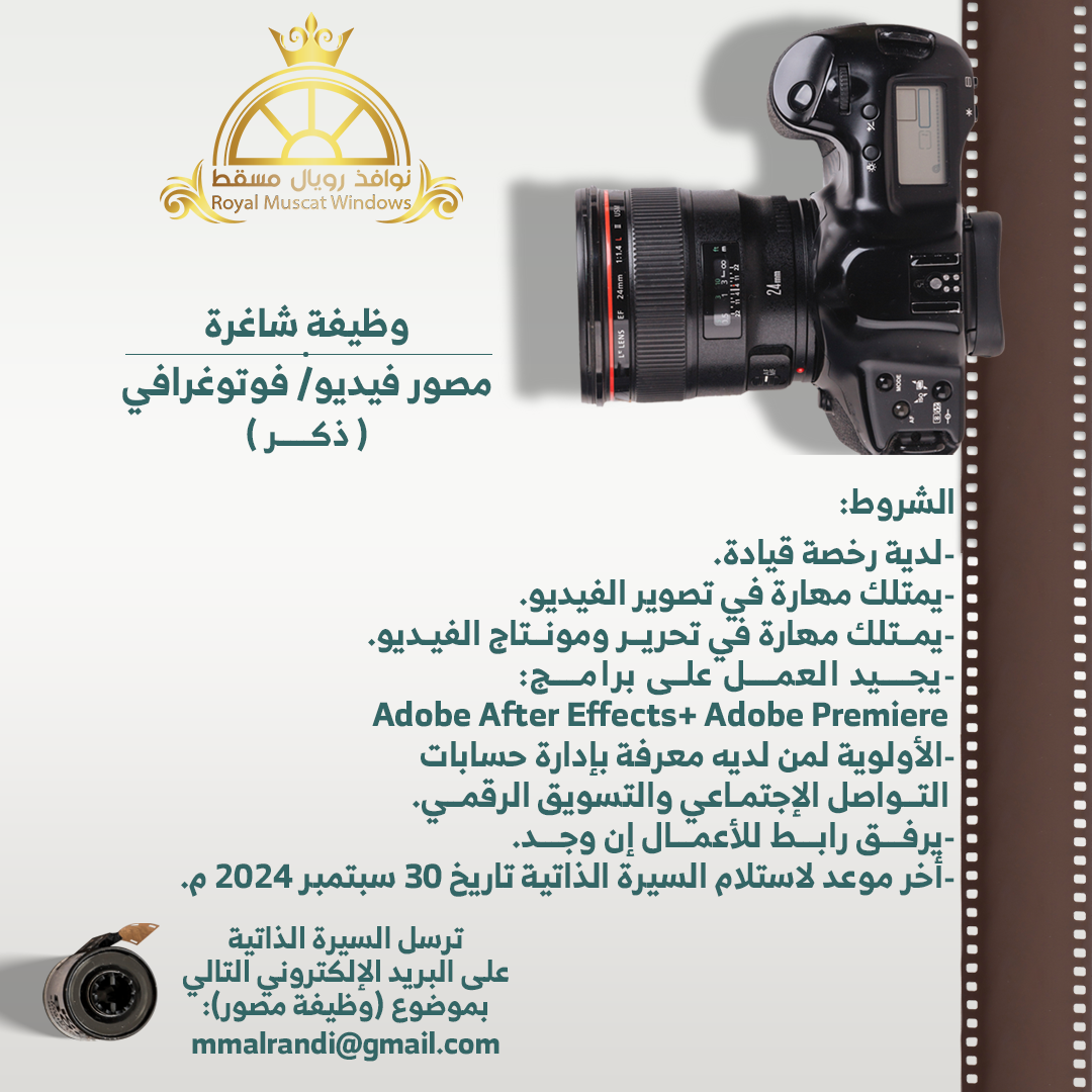 نوافذ رويال مسقط - وظيفة شاغرة ( مصور فيديو / فوتوغرافي ذكر )